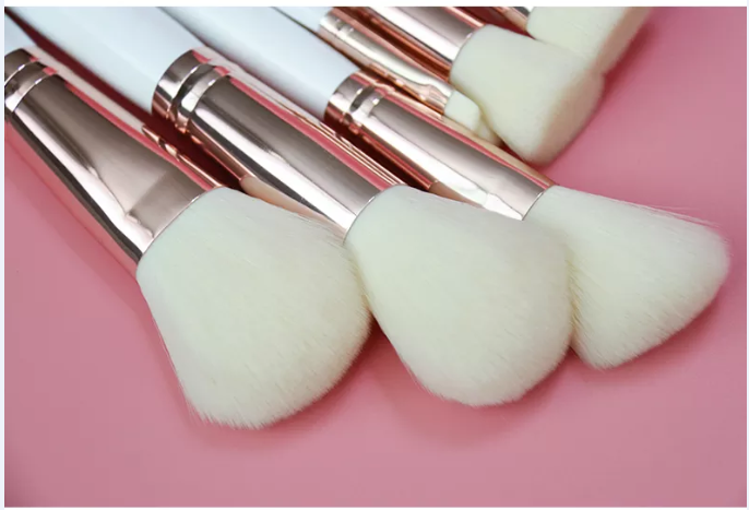 Cruelty free vegan bristles makeup brush set in fancy white and rose gold colors that won't out of fashion